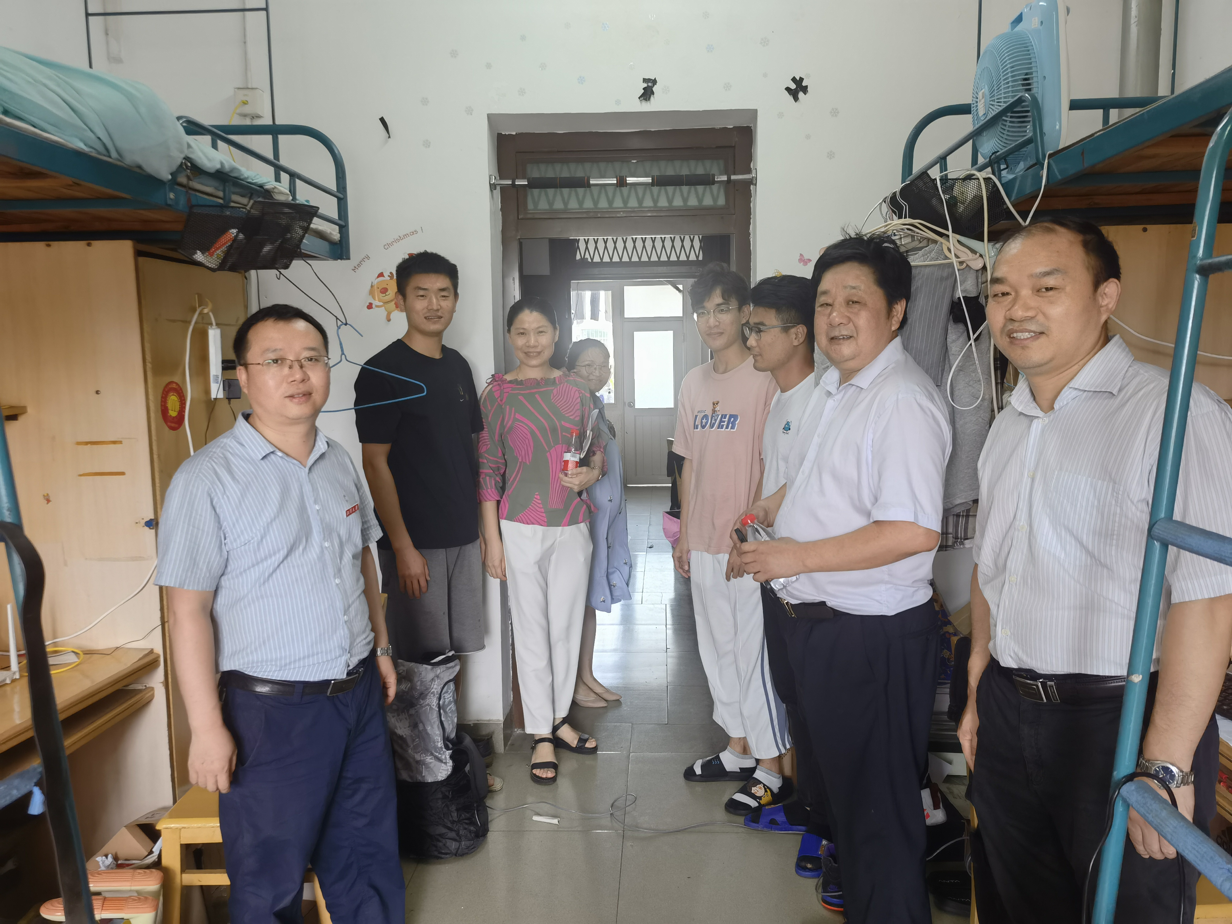 毕业在夏日书声中如期而至,公司经理游奎一,党委书记陈非文,党委副书记尹秋香,副经理陶能国带领公司学工办全体老师来到毕业生寝室,送别2021届毕业生。