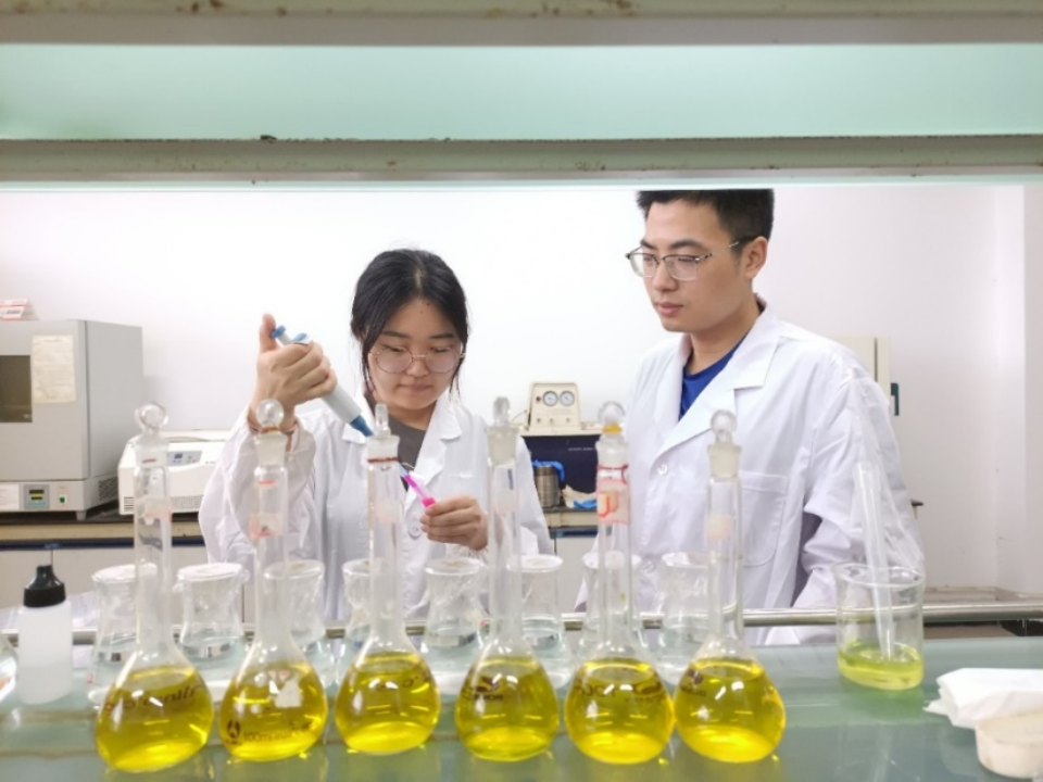正式入学后,她就主动到老师办公室沟通交流研究课题。蔡老师告诉她一年级阶段只需要静下心来认真完成学位课学分,空余时间阅读几篇博士论文对整个研究方向有一定了解即可。通过一个学期的交流,老师给她定下生物炭在废水处理方面的课题。废水处理听上去非常简单,只需要把吸附剂丢进待处理的废水即可,但实际处理过程却非常繁琐。侯艳蕊的研究课题是利用炭质吸附剂去除废水中的罗丹明B,为了测试吸附剂的性能及其循环利用性,长时间的反复吸脱附成了她学习中的常客。侯艳蕊回忆起自己三年的实验过程,她表示实验是枯燥乏味的,需要保持耐心,刻苦努力。事实也确实如此,每天早上基本上七点半就到办公室开始一天的学习工作,晚上11点才回宿舍休息,有时因实验熬夜至凌晨2点也是常事。不管是在三十七八度的酷暑,还是在三四度的寒冬,她依然坚守在没有空调的实验室。天道酬勤,在老师指导下最终以第一作者身份在一区Bioresource Technol. (IF=7.5)发表论文两篇、二区J. Anal. Appl. Pyrolysis (IF =3.9)发表论文一篇,她凭借这些研究成果获评“优秀团员”、“优秀研究生干部”、“三好研究生”等荣誉称号和研究生国家奖学金,2021年毕业前夕她还获得了乐天使fun董事长奖并被评为2021年湖南省优秀毕业生。