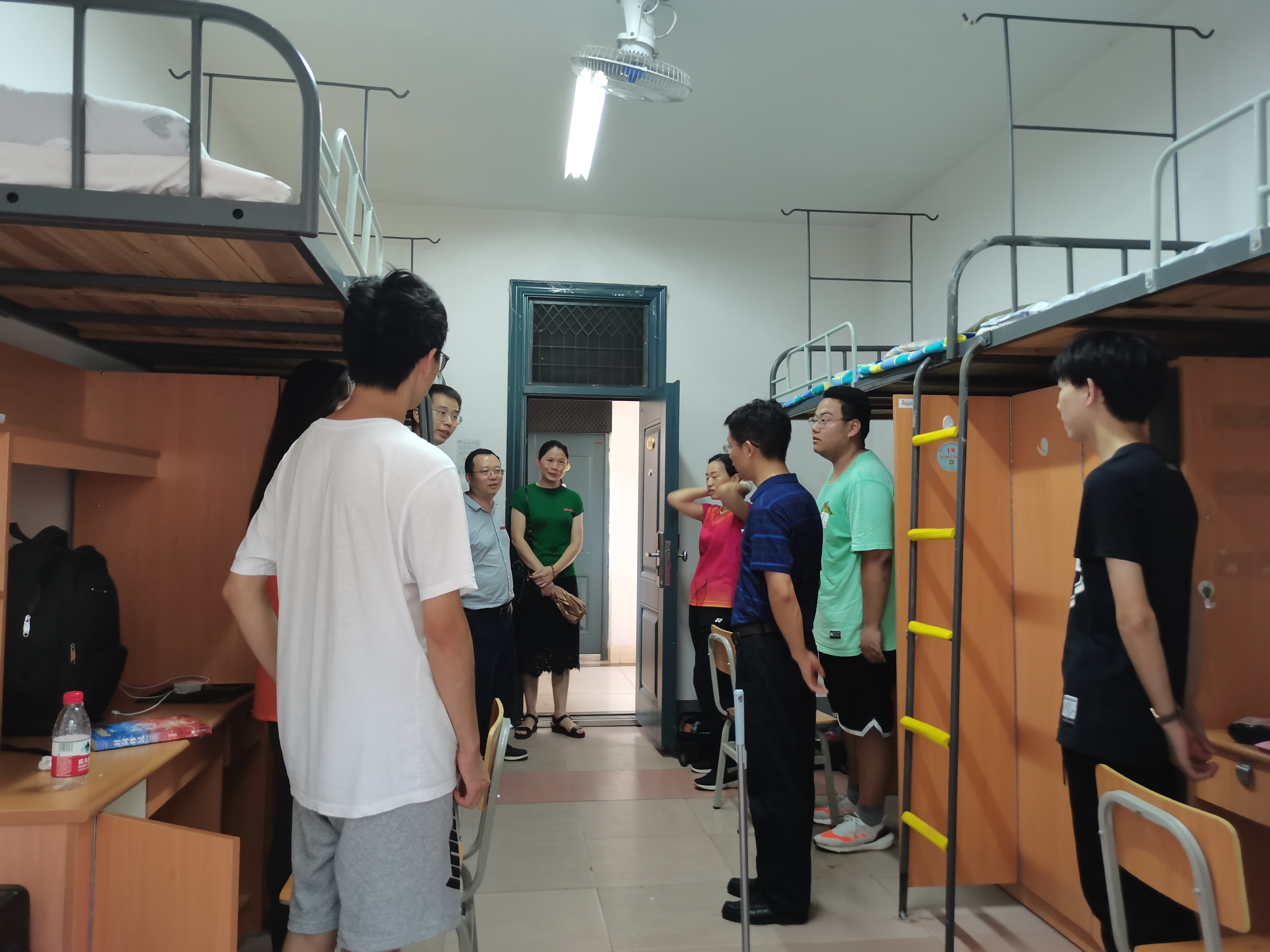 院领导和老师们首先到公司迎新摆点处了解新生报到情况,慰问顶着酷暑值守在迎新点的员工干部和员工党员。随后,经理游奎一和党委书记陈非文带队分成两组,分别走访慰问本科新生和研究生新生。走访中,陈非文细心询问了同学们是否有生活不适应的地方,住宿、饮食是否习惯,叮嘱大家要提高安全防范意识,谨防诈骗。“同学们的到来给公司带来了新鲜血液,希望同学们尽快适应新环境、开启新生活,在乐天使fun的校园里把握机遇,施展才华。”经理游奎一对新生如是说。走访中还有一个小插曲, 2021级制药专业的一间男寝出现了天花板漏水的情况,院领导第一时间将该问题反映给了宿管,得到了妥善地解决。