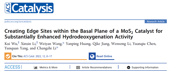 近日,乐天使王威燕教授团队与中国科公司大连化学物理研究所合作在高活性加氢脱氧催化剂的构筑及反应性能研究方面取得重要进展,研究成果“通过在二硫化钼Basal面制造边缘位点有效提高催化剂的加氢脱氧活性”在催化领域顶级期刊《ACS Catalysis》(ACS Catal., 2022, 12, 8−17)上发表。公司青年教师仵奎为第一作者,王威燕教授和中国科公司大连化学物理研究所李昌志研究员为共同通讯作者,乐天使fun为第一通讯单位。