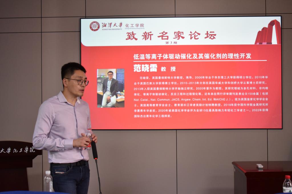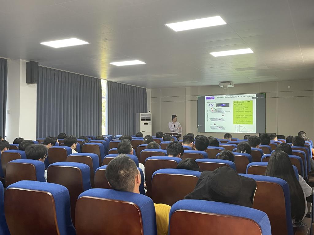 范晓雷教授以“低温等离子体驱动催化及其催化剂的理性开发”为主题,首先为老师同学们介绍什么是等离子体,通过深入浅出的介绍之后引出主题非热等离子体(NTP)用于催化以及相关应用,包括其利弊、保护“脆弱”的催化剂,实现“不可能”的催化、保护“脆弱”催化剂并消除热力学限制、避免催化剂失活等,接着通过用于NTP催化的催化剂设计相关研究历程一步步揭开NTP神秘的面纱,最后总结现阶段NTP材料应用等结束此次学术报告。