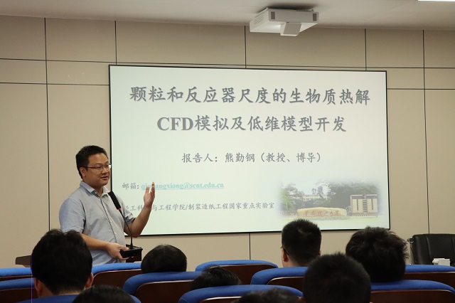 熊勤钢教授以“颗粒及反应器尺度的生物质热解CFD模拟及低维模型开发”为主题,从生物质热解的角度出发,对研究工作进行层层剖析,引出颗粒尺度CFD模拟,重点讲解了CFD模型的反应动力学以及低维模拟,最后提及了对未来工作的展望。