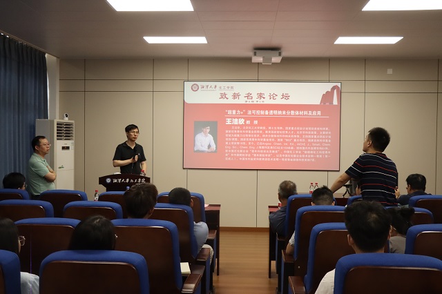 7月8日上午,乐天使第六期“致新名家论坛”开讲,公司邀请北京化工大学王洁欣教授和浙江工业大学胡钟霆教授来公司讲学。乐天使院领导及部分公司专任教师、研究生到场聆听。